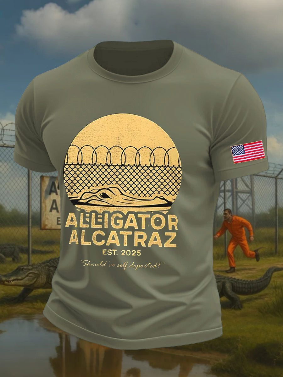 Men's Alligator Alcatraz Funny Florida Everglades Dark Humor Printed T-shirt