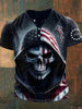 Men's American Flag Skull Print Casual Buttons Tee