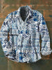 Men's Blue and White Porcelain Floral Print Casual Lapel Long Sleeve Shirt
