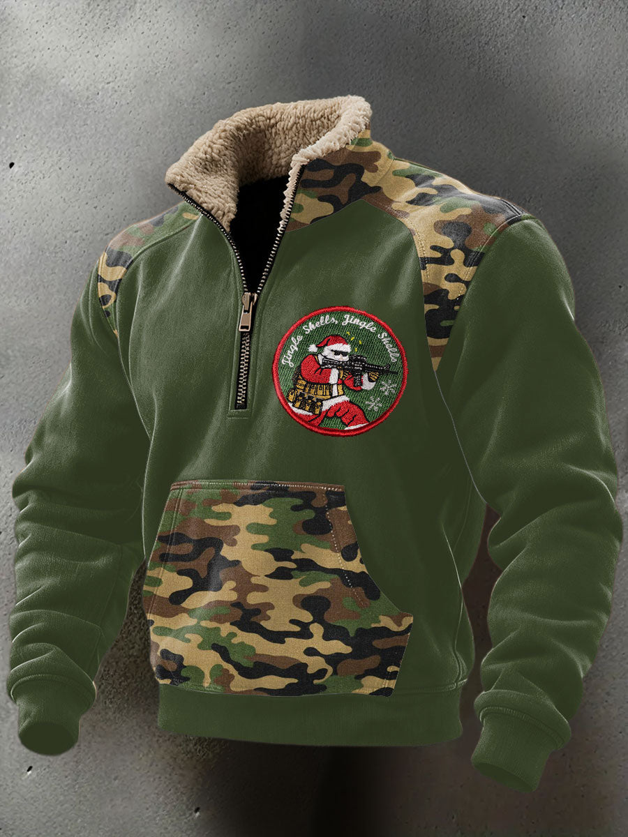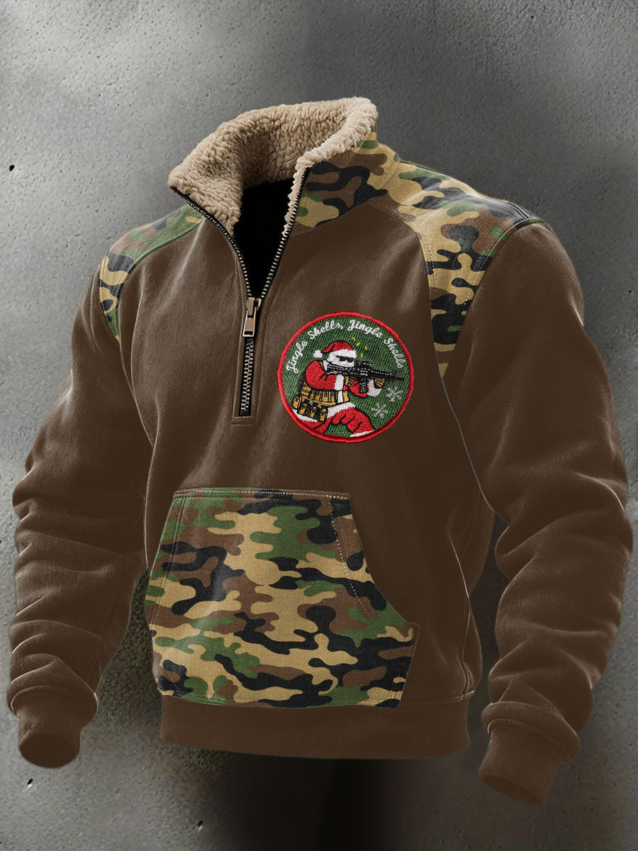 Men's Funny Pew Lover Veteran Printed Plush Stand Collar Shirt