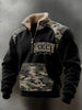 Men's Funny Pew Lover Veteran Printed Plush Stand Collar Shirt