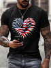 Men's Independence Day American Flag Heart Fireworks Casual Tee