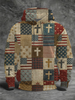 Men's Patchwork of Faith Printed Oversized Drop-Shoulder Hoodie with Pockets
