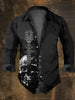 Men's Punk Art Print V-Neck Long Sleeve Button Shirt Top