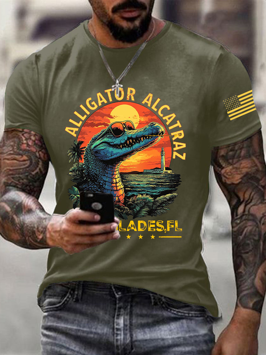 Men's Retro Alligator Alcatraz Funny Florida Everglades Dark Humor Short Sleeve T-shirt