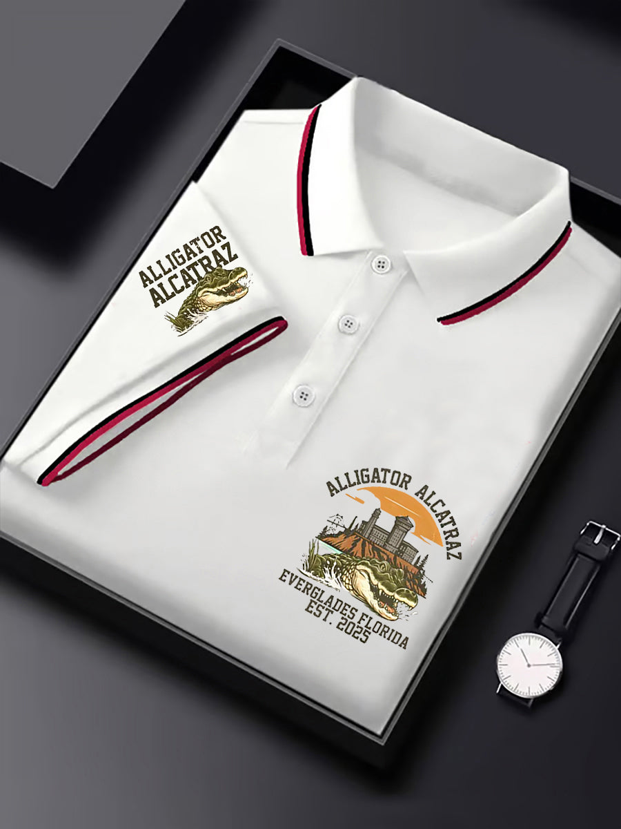 Men's Retro Alligator Alcatraz Funny Florida Everglades Dark Humor Short Sleeve Tee