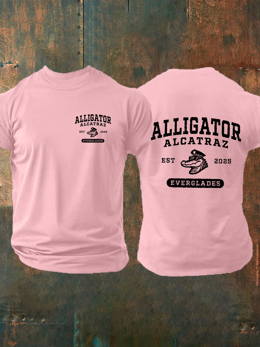 Men's Retro Alligator Alcatraz Funny Florida Everglades Dark Humor Short Sleeve Tee