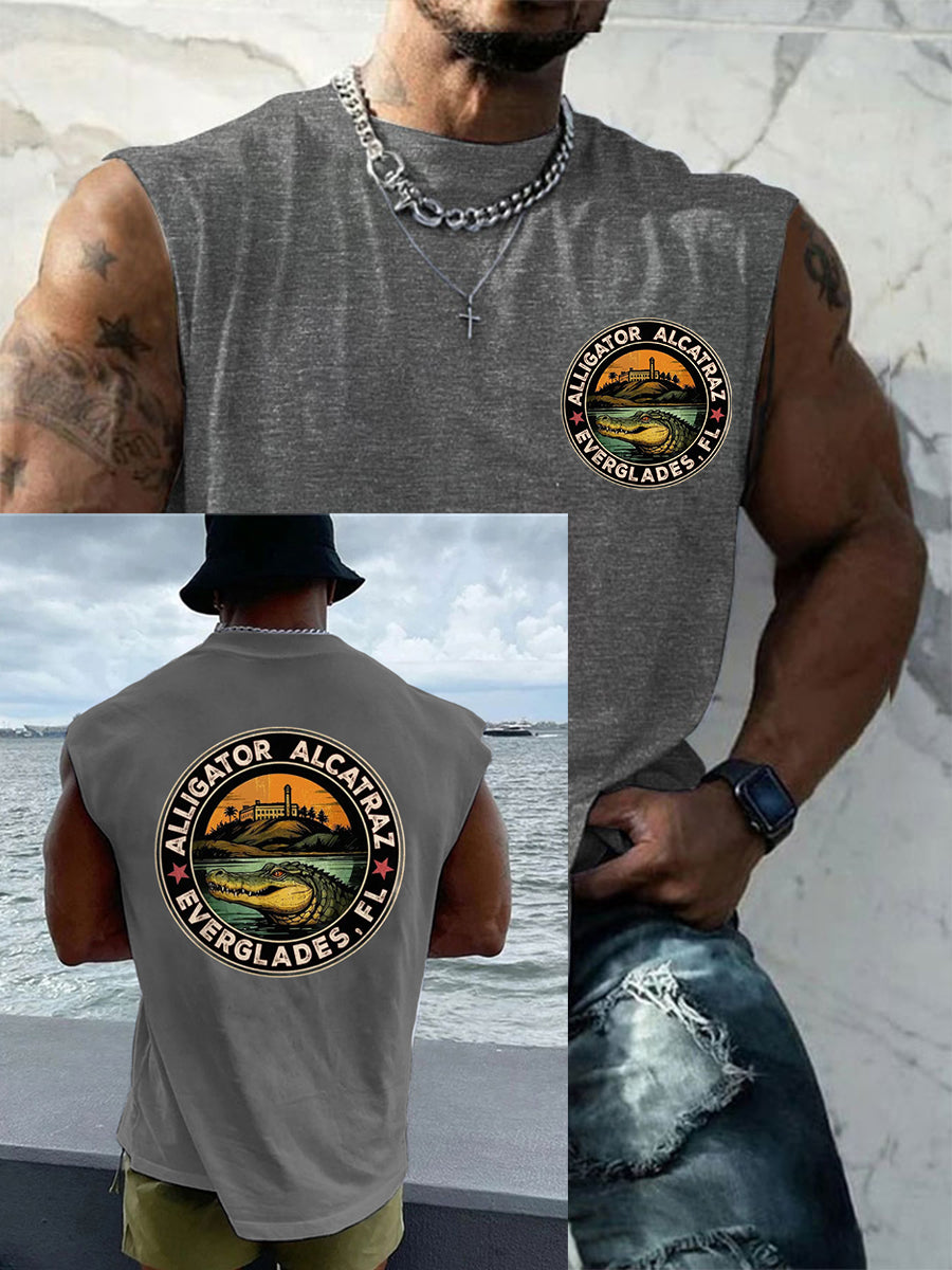 Men's Retro Alligator Alcatraz Funny Florida Everglades Dark Humor Tank Top
