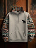 Men's Retro Western Aztec Cowboy Print Casual Zipper Sweatshirt