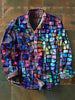 Men's Stained Glass Print Abstract Casual Long Sleeve Shirt