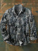 Men's Vintage Dark Skull Floral Art Print Lapel Long Sleeve Pocket Shirt