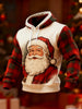 Men's Vintage Santa Claus Christmas Red Plaid Print Casual Hoodie