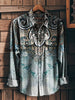 Men's Vintage Western Floral Art Print Long Sleeve Workwear Pocket Shirt