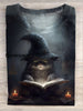 Retro Magic Cat Art Print Casual T-Shirt