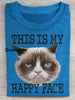 This Is My Happy Face Funny Grumpy Cat Art Print Casaul Short Sleeve T-shirt