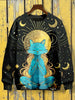 Unisex Divination Praying Cat Pattern Casual Round Neck Long Sleeve Sweatshirt