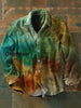 Men's Vintage Western Gradient Green Abstract Print Casual Long Sleeve Shirt