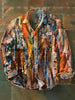 Unisex Vintage Oil Painting Pattern Printed Cotton Lapel Long Sleeve Pocket Shirt