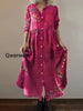 Vintage Bohemian Floral Art Print Chic V Neck Three Quarter Sleeve Button Elegant Midi Dress