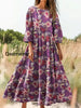 Vintage Bohemian Floral Print Elegant Chic Loose Midi Dress-DR-F-277
