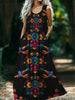 Vintage Bohemian Floral Print Elegant Chic Loose Midi Dress-DR-F-286
