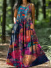 Vintage Bohemian Floral Print Elegant Chic Loose Midi Dress-DR-F-364