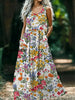 Vintage Bohemian Floral Print Sleeveless Loose Midi Dress-DR-F-444