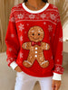 Vintage Christmas Glitter Gingerbread Man Printed Casual Loose Long Sleeve Top