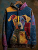 Vintage Patchwork Dog Print Art Casual Hoodie