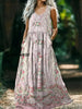Vintage Round Neck Bohemian Ethnic Floral Print Elegant Chic Sleeveless Loose Midi Dress