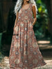 Vintage Round Neck Bohemian Ethnic Floral Print Elegant Chic Sleeveless Loose Midi Dress