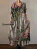 Vintage Round Neck Bohemian Floral Print Elegant Chic Loose Midi Dress-DR-D-110