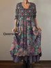 Vintage Round Neck Bohemian Floral Print Elegant Chic Loose Midi Dress-DR-D-125