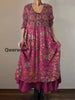 Vintage Round Neck Bohemian Floral Print Elegant Chic Loose Midi Dress-DR-D-126