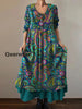 Vintage Round Neck Bohemian Floral Print Elegant Chic Loose Midi Dress-DR-D-35