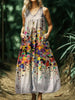 Vintage V-neck Bohemian Art Print Elegant Chic Loose Midi Dress