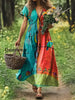 Vintage V-neck Bohemian Floral Print Elegant Chic Loose Midi Dress