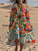 Vintage V-neck Bohemian Floral Print Elegant Chic Loose Midi Dress