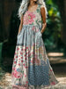 Vintage V-neck Bohemian Floral Print Elegant Chic Loose Midi Dress