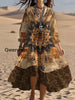 Vintage V-neck Bohemian Floral Print Elegant Chic Loose Midi Dress