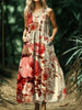 Vintage V-neck Bohemian Floral Print Elegant Chic Loose Midi Dress