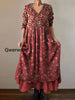 Vintage V-neck Bohemian Floral Print Elegant Chic Loose Midi Dress