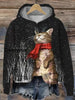 Winter Cat Long Sleeve Casual Hooded Sweatshirt