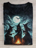 Witch Bonfire Dance Ceremony Art Print Unisex Round Neck Short Sleeve Casual T-Shirt