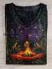 Witch Bonfire Ritual Art Print Unisex V-neck Short Sleeve Casual T-shirt