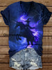 Witch Unicorn Art Print Unisex V-Neck Short Sleeve Casual T-Shirt