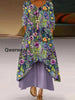 Women's Alzheimer's Awareness Purple Floral Printed V-Neck Elegant Chic Loose Long Sleeve Maxi Dress
