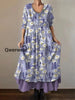 Women's Alzheimer's Awareness Purple Flower Printed Loose Long Sleeve Cotton Linen Dress