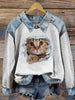 Women's Animal Print Patchwork Lapel Long Sleeved Sweatshirt