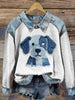 Women's Animal Print Patchwork Lapel Long Sleeved Sweatshirt